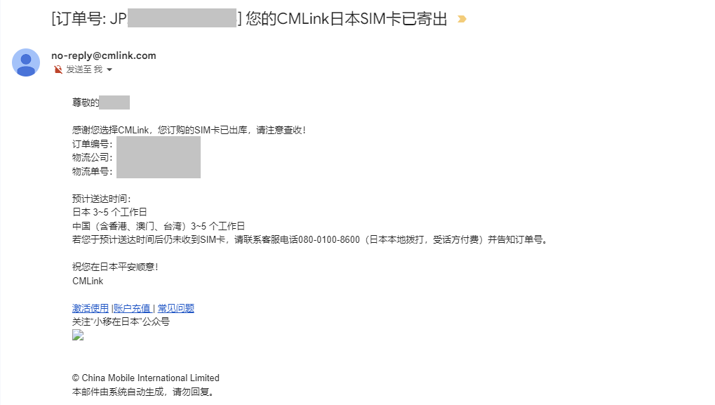 如果您已完成 CMLink 手机卡的购买, 抵日前只需要阅读 「注意」 部分即可