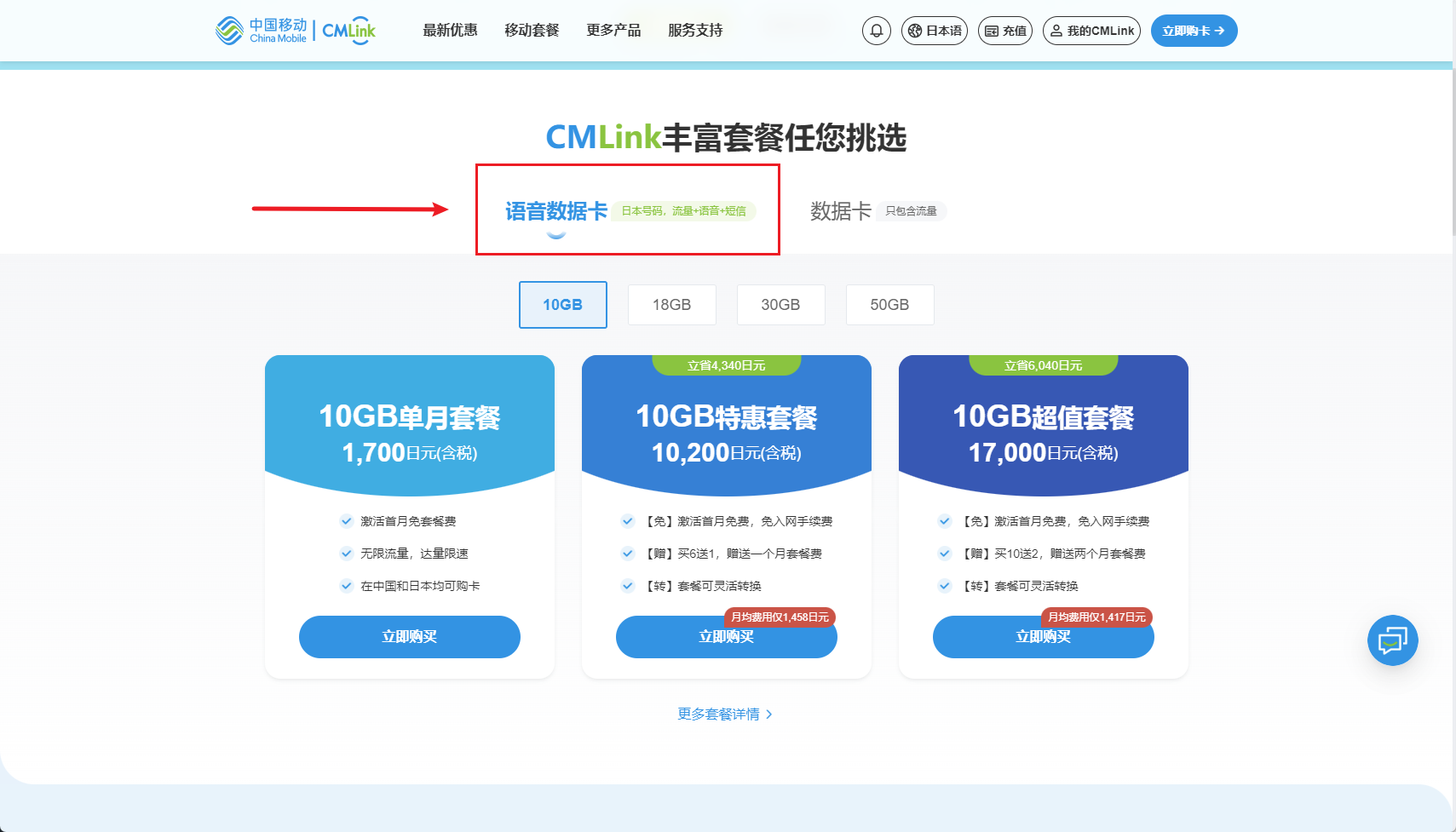 如果是为了抽票而购买 CMLink, 请务必选择 语音数据卡 , 只有语音数据卡才会分配日本手机号