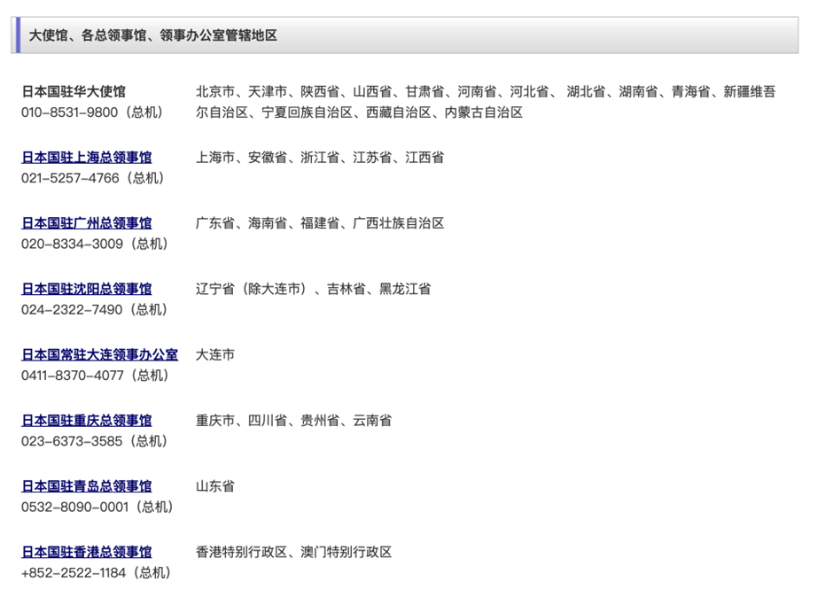 请考虑你的户籍地或常住地,按照上面的分类进入对应的领事馆/大使馆。日本的旅游签证要求通过代办机构代办,此处按照北京市为例