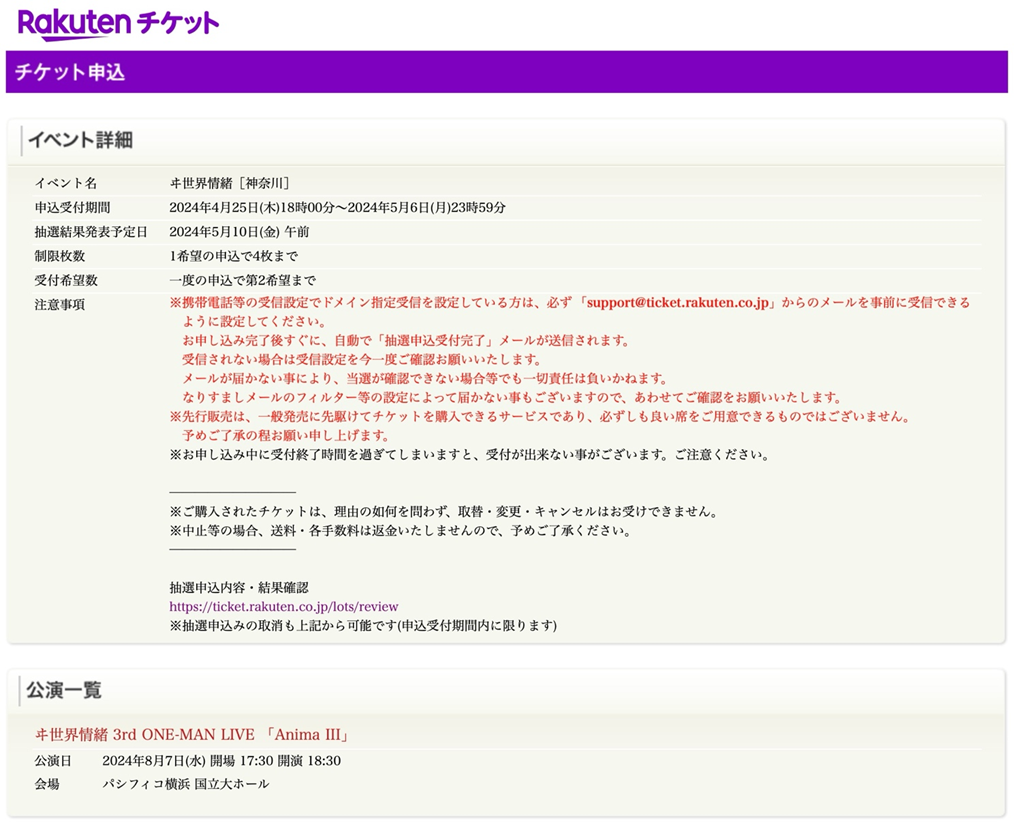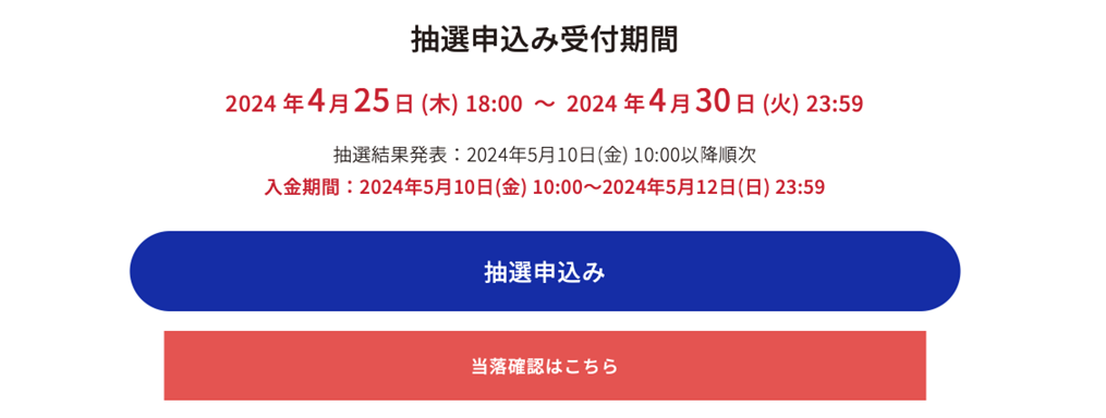 抽选时间:2024/04/25(木) 18:00 〜 2024/05/06 (月) 23:59