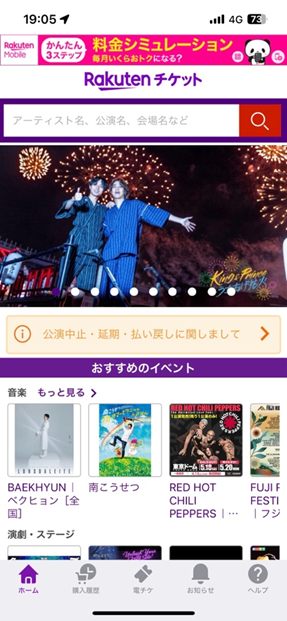 购买完门票后,电子门票一般会在live开演前显示在你手机端的乐天门票app上。